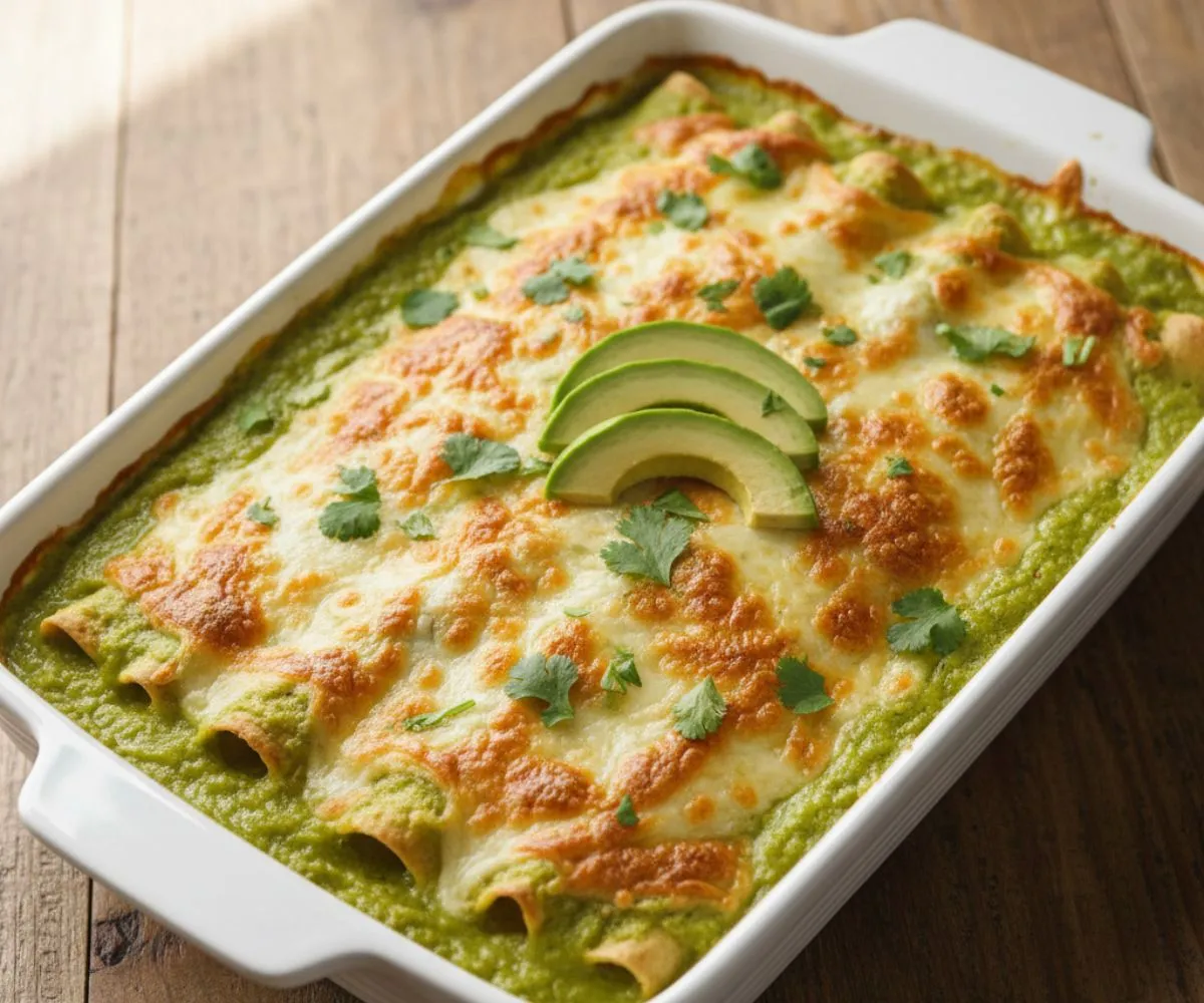 Green enchiladas taste fresh and slightly tangy. They are different from red enchiladas, which use red chili sauce and taste deeper and smokier. The vegan version replaces dairy with plant-based ingredients.